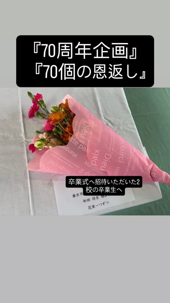 卒業生全員へ心ばかりの花束を送らせていただきました。